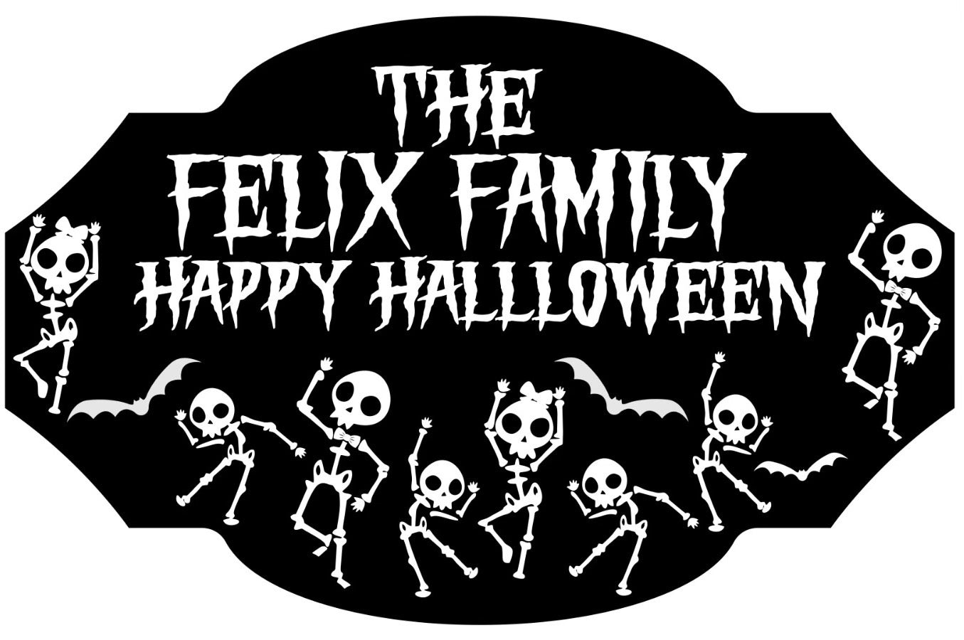 The Skeleton Family Halloween sign is ready for your Halloween bash or to decorate your front yard! It can be personalized to fit your family unit. The sign is double-layer, White Acrylic over Black PVC.